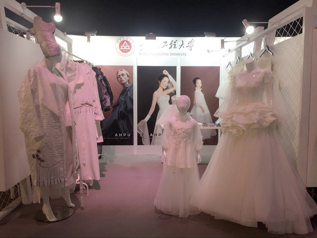 纺织服装学院在学校领导的大力支持下,积极筹划、认真准备,参加了以“大•声”为主题的首届中国国际知名高校服装(服饰)优秀作品展,以静态展方式亮相大学生时装周。我校共展出了精心遴选的学生优秀服装服饰作品20件,与伦敦时装学院、中央圣马丁学院、北京服装学院等34所优秀的中外院校同场竞技,参展作品获得兄弟院校和评委的一致好评。经过学院推荐,服设141班陈亮同学经过作品稿遴选、实物作品展示、现场立体裁剪及答辩等环节的角逐,斩获本届时装周女装设计奖以及“新人奖”优秀奖。