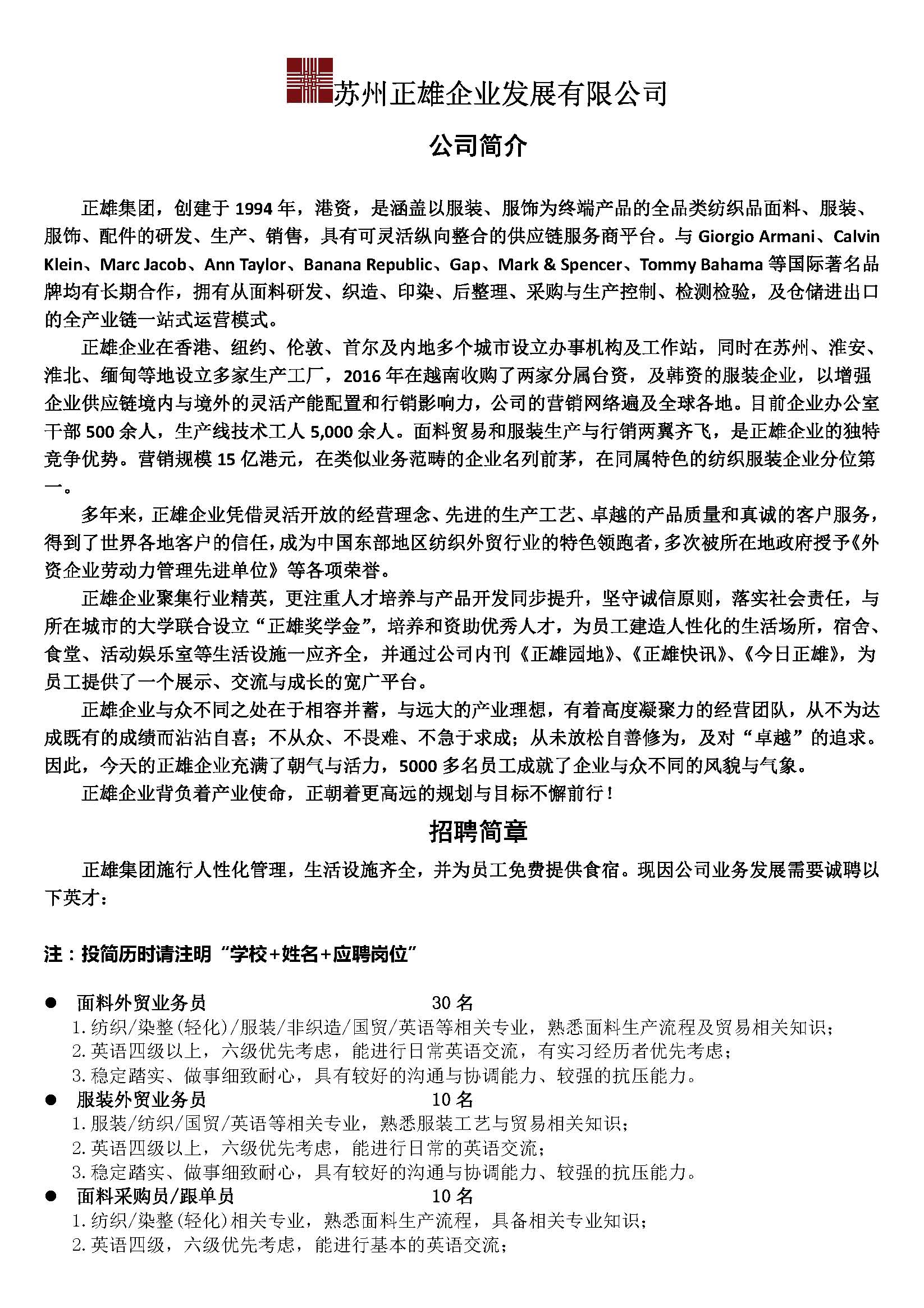 【2019届】31号 苏州正雄企业发展有限公司(113专场)
