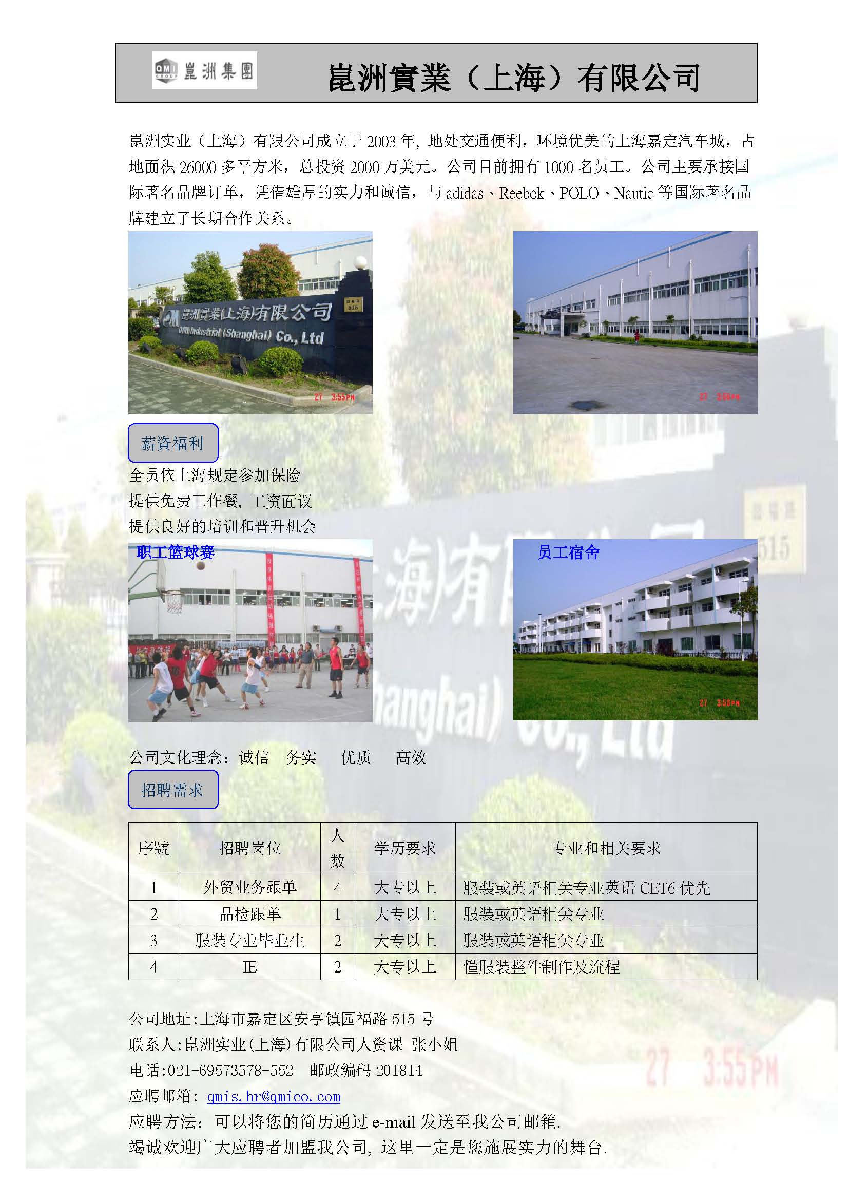 【2019届】44号 崑洲實業(上海)有限公司招聘信息